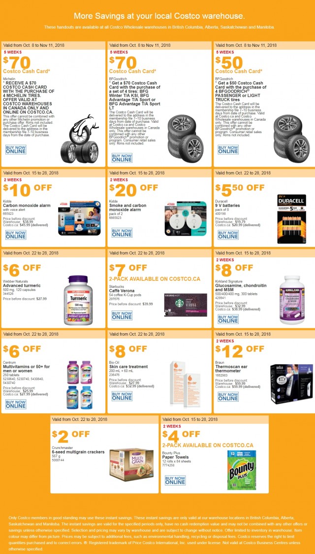 These Costco Canada BC, AB, SK and MB instant offers are valid from October 22, 2018, until, October 28, 2018. Some of the deals are valid until November 11, 2018. Only Costco members in good standing may use these instant savings handouts and Costco discount will be automatically added when you purchase any of these items.