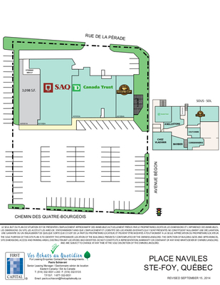 Direction from Autoroute 540 (Autoroute Duplessis): take Exit 6, join Chemin des Quatre Bourgeois in the direction to the river. Place Naviles is located not far away from Autoroute 540, on your right side, on the corner of Chemin des Quatre Bourgeois and Avenue Bégon. To get directions click on the button above the map.